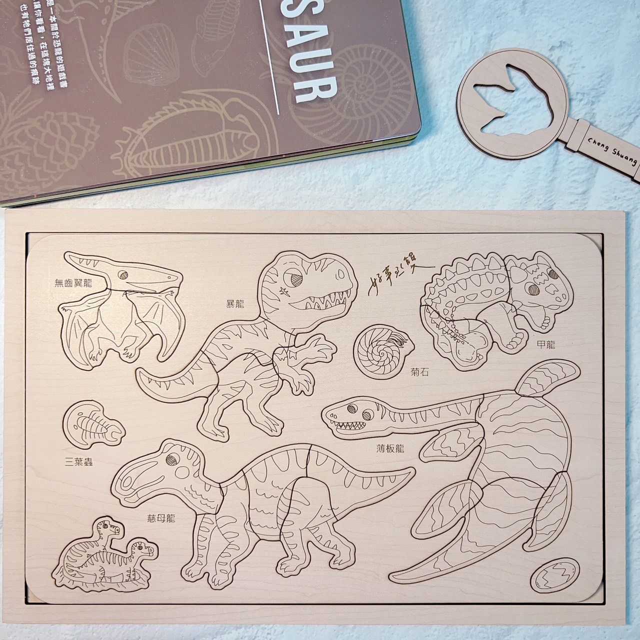 拼圖建議搭配書籍遊戲,讓孩子在兩處都可試著找看看是誰偷偷跑進白堊紀?